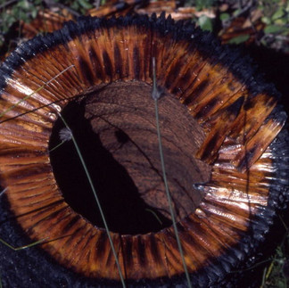 Miðmyndin sýnir stofn grastrjáa. Hann er það gamall að innsti hluti hans hefur rotnað í burtu. Myndirnar eru héðan en þær tók Ian Fraser.