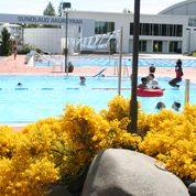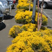 Þrjár myndir af geislasóp. Hann myndar mikið blómahaf og á það til að blómgast aftur á haustin, en þá mun minna eins og sjá má á þriðju myndinni.